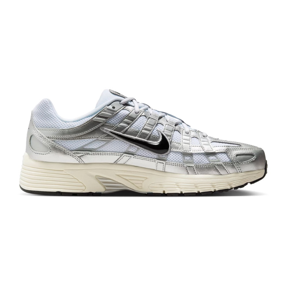 Elevate your everyday style with the Nike P6000 White Black Metallic Flat Silver sneakers.