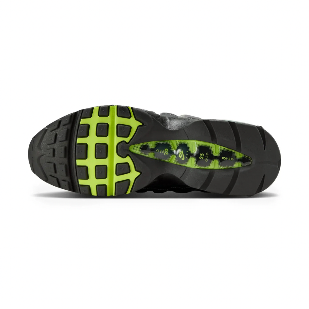 Inspired by the iconic mid-90s running silhouette, this updated release brings back the legendary Big Bubble Air unit, delivering enhanced cushioning while staying true to the shoe’s heritage design. The upper features layered mesh and synthetic panels that mimic the human anatomy inspiration of the original model, creating depth, structure, and unmistakable style. Finished in the classic Neon colourway, the bold volt accents contrast against greyscale tones for a timeless look that pairs effortlessly with streetwear and casual fits. Visible Air cushioning and a durable rubber outsole ensure comfort and traction for all-day wear.